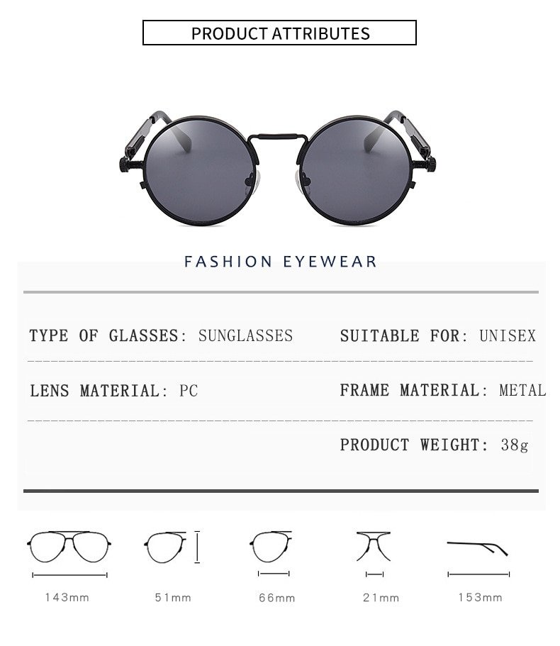 Retro Round Sunglasses Men Women Brand Designer Punk Style Windproof Metal Frame Vintage Sun Glasses Oculos De Sol
